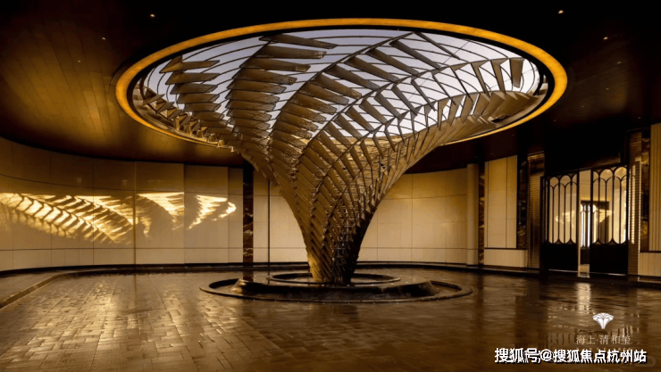 再仔细看, 顶部香槟金色格栅塔冠和壁柱的色调,可谓审美拉满 !还有基座, 大面积石材搭配艺术玻璃和古铜色金属窗框,再加上奢石、艺术的点缀,定制高阶归家体验感 。如此独具辨识度的外立面, 未来必定刷新区域天际线,成为徐汇一道璀璨夺目的风景。