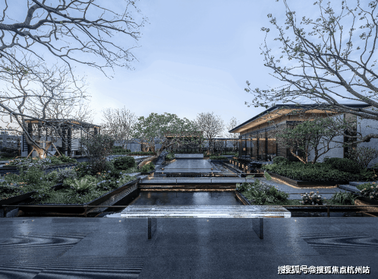 长达200米、近1000㎡的中央水系贯穿社区,以五种不同形态灵动呈现。