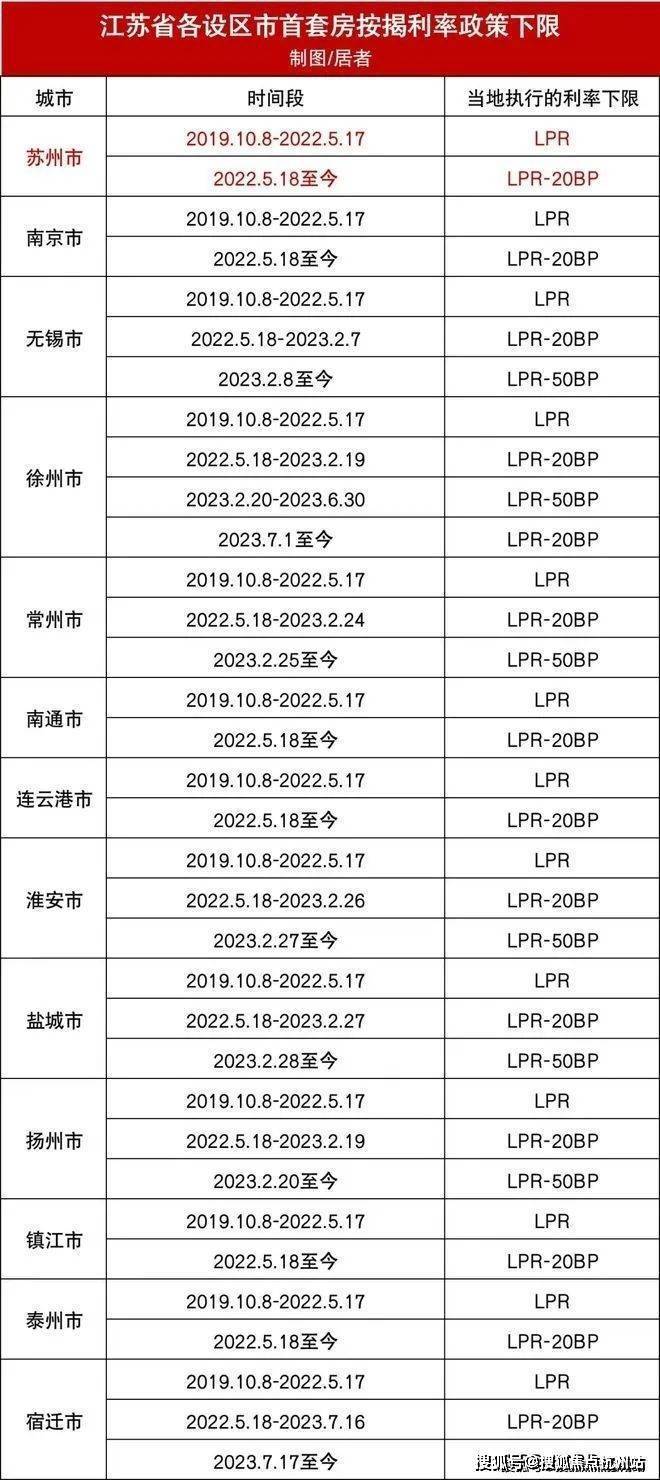 根据此中国人民银行江苏分行,公布的江苏省各设区市首套房按揭利率政策下限。