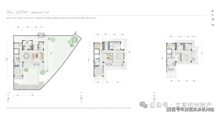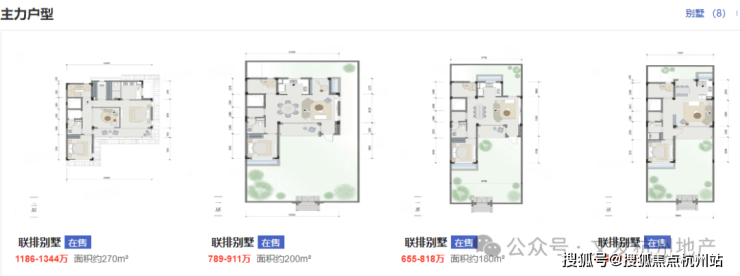 户型:主力160-270㎡中式合院,地上 3 层、地下 2 层(5.5m 挑高,可隔两层,赠送约 100㎡),双首层设计(首层 + 地下室均连庭院)、270° 环幕露台(20-27㎡)、双主卧套房、电梯入户、得房率超 90%