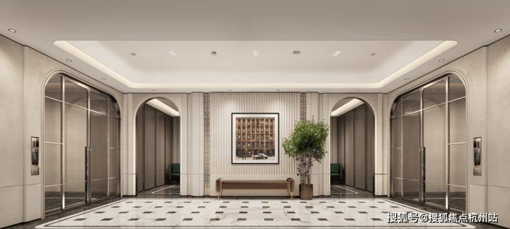 空间匠筑海派精奢美学,萃取嘉佩乐酒店式归家礼序,以低饱和高级灰基调融合室内外无界场景,全公区奢石铺装(普拉达绿、莫奈灰等)与地下三层大堂珍稀石材组合,于细节处雕琢低调奢华的艺术归家场域。