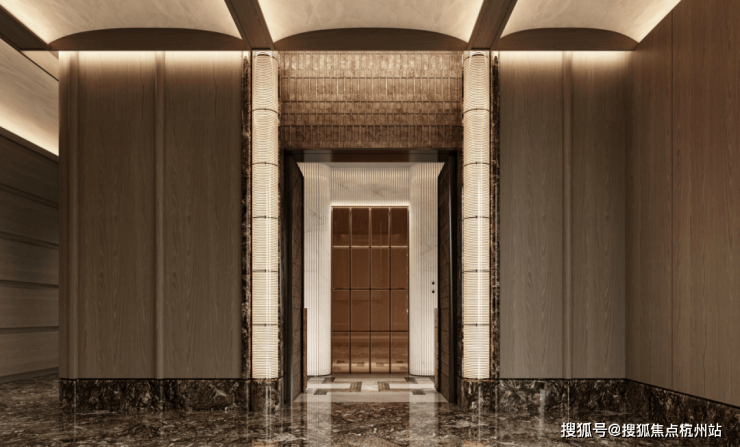 足足打造了三层地下空间,且入户大堂同样采用了大面积石材铺设、奢石点缀和金属线条搭配,空间气场强大,归家的过程中,形成了非常奢华的视觉冲击力。