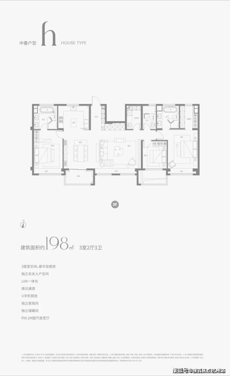 建面约138㎡的中间套户型,与边套略有差异,但同样尺度感强、细节满满