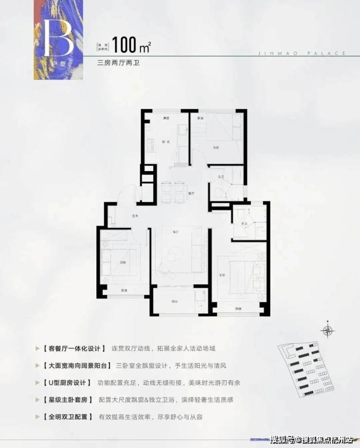 建面约100㎡3房2厅2卫▼