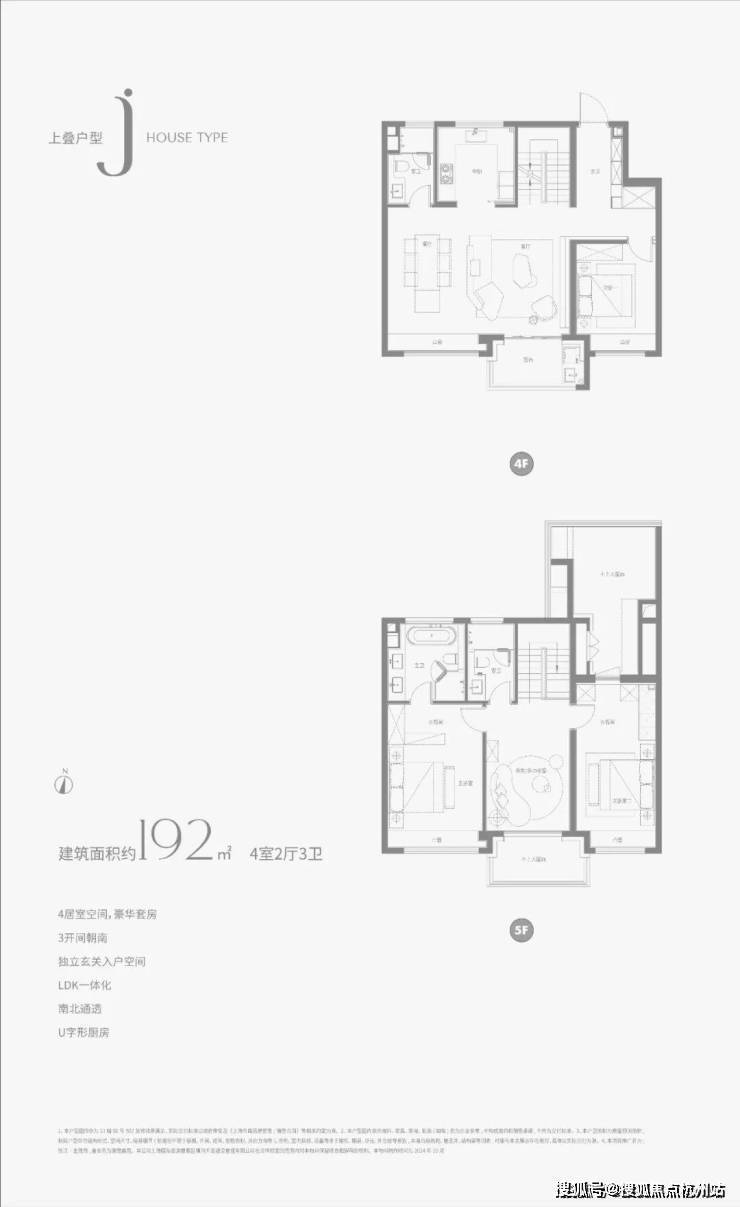 建面约216㎡下叠户型图▼