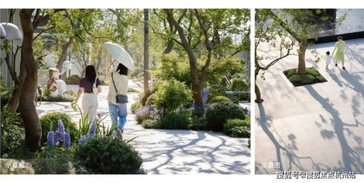在景观设计理念上,灵感于丰子恺撰写的《四时之美》,取意他在这片土地生活居住时的美好片段,以春、夏、秋、冬四季及二十四节气为主题,营造出四季有景,景景有别的街区空间。