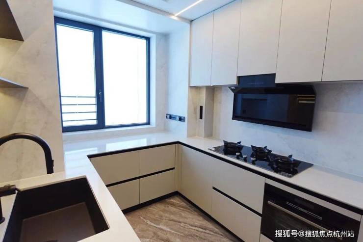 U型厨房设计,动线合理,空间感还不错。