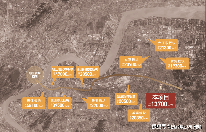 随着钱塘区的崛起,新房限价呈现着巨大的落差。西端奥体板块新房限价48100元/㎡;沿途的萧山市北板块限价39500元/㎡、萧山科技城板块限价达到28500元/㎡