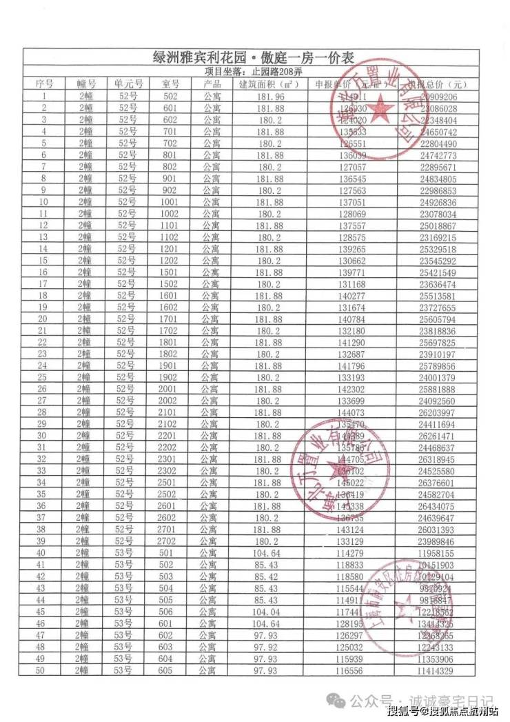一房一价表发布
