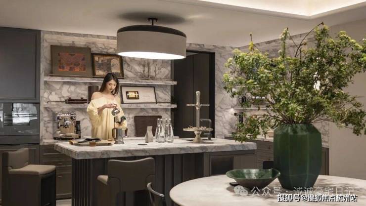 万科中興傲舍凝聚72种高端豪宅都难得一见的奢材,如皇家白奢石、Prada绿皮革面奢石、砖纹定制铝板等等,每一处细节都透露出精致与考究。