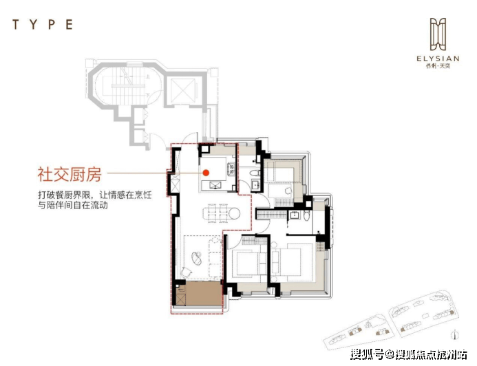 ①半开放式社交厨房