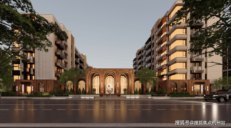 百年型制立面:撷取思南公馆拱券、应公馆对称设计等海派经典元素,于秩序中彰显海派大宅的深厚底蕴。