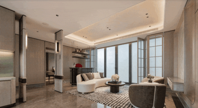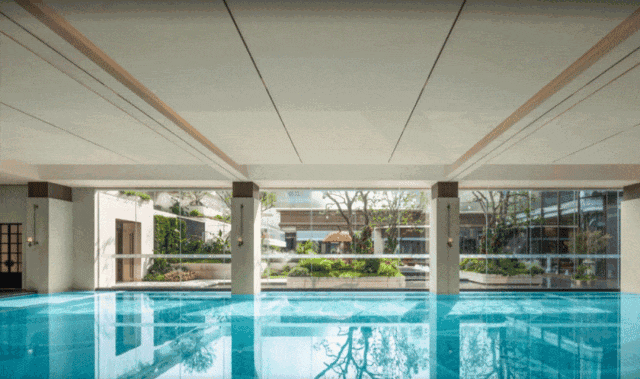 约1800㎡会所,包含茶室、私宴厅、行政酒廊、恒温泳池、健身房、瑜伽空间、会客厅、儿童游乐八大全维功能,搭载“环幕级落地窗”,一边锻炼,一边欣赏窗外景色,让业主归家即享度假生活。