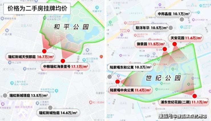 无论是上海的世纪公园、和平公园周边,首排住宅与非一线房源的价差都形成碾压。