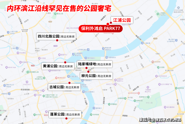 华侨城苏河湾(20w+)、弘安里(23w)、海泰北外滩(17w)等高端住宅星罗棋布,保利外滩启PARK77便扎根这条外滩滨江豪宅金线,与其它豪宅共筑滨江人居高点。