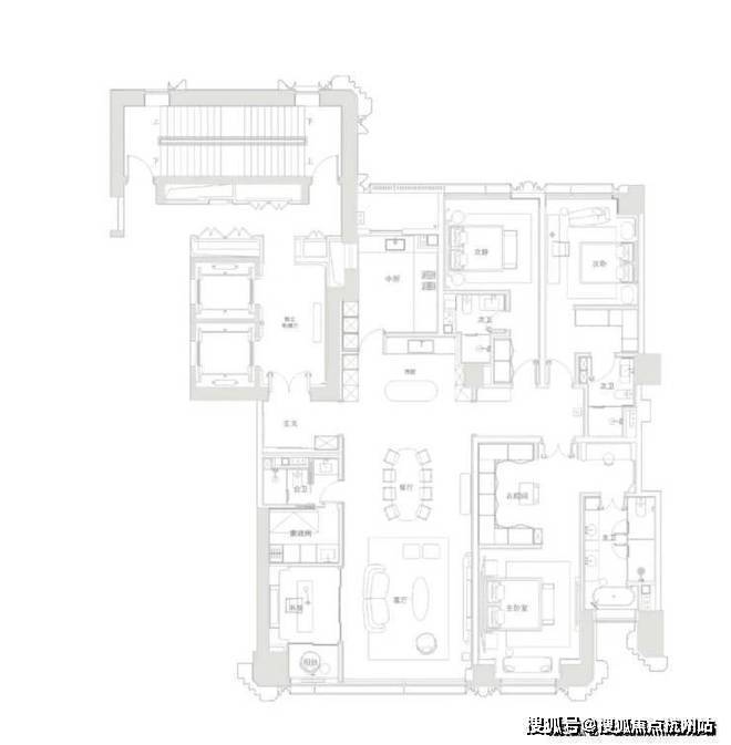 约600㎡户型是6房带4套房,完整满足了居住在平层的所有功能空间需求。