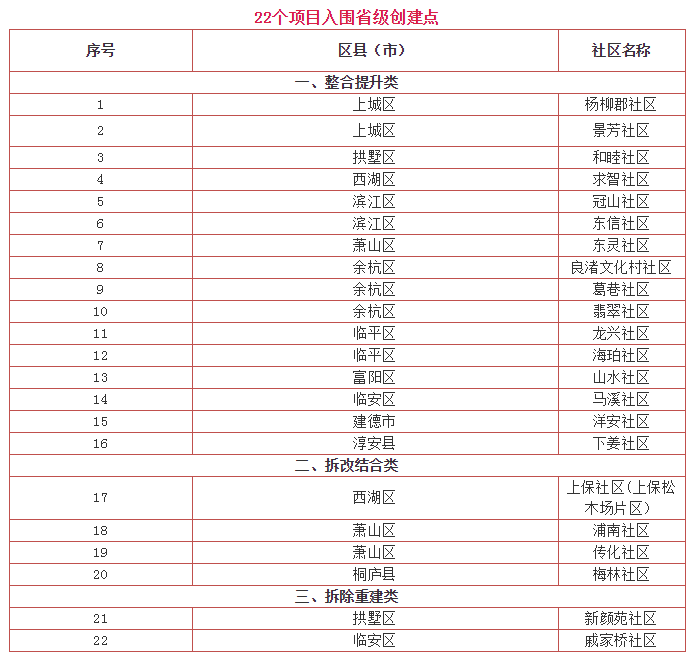 03形成以余杭葛巷社区、滨江冠山社区为代表的安置房小区整合提升创建样板