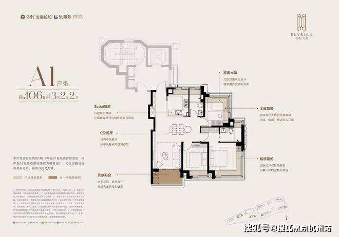 东1#边套: 全屋飘窗+约270°的转角飘窗,实际空间感十分优秀!