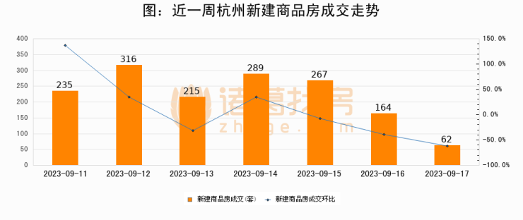 【杭州成交日报】09月17日新房成交62套、二手房139套;涨价房源34套