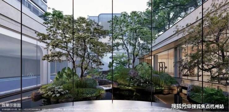 4、下沉式庭院, 通过乌桕树、溪流构建一处安静的栖息之境,业主可在这里尽情放空。