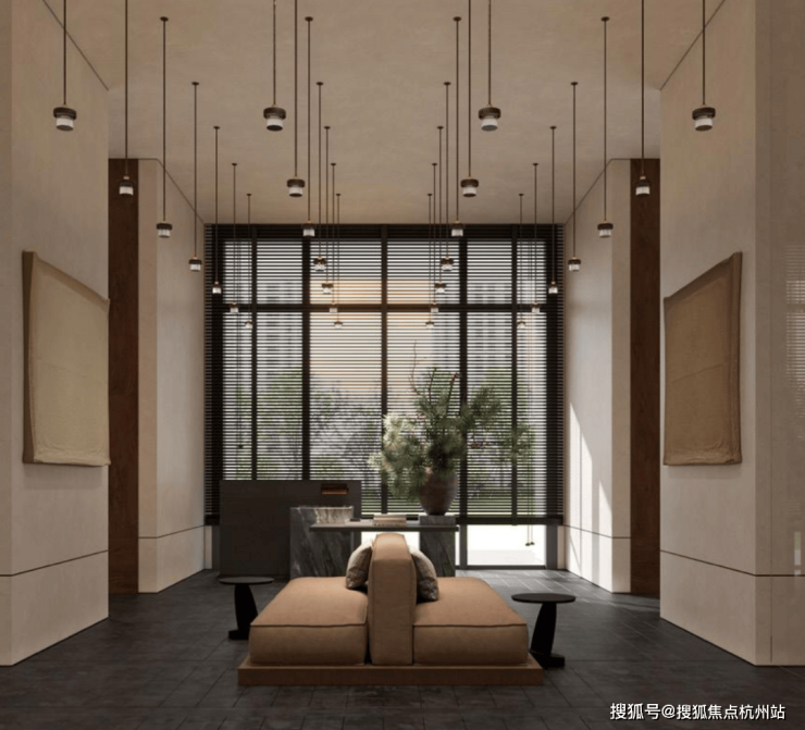 外立面以低饱和橙灰为主调,复合铝板搭配深灰门窗线条,简约高奢且历久弥新。