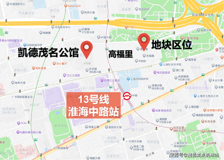 本次公示的地块是高福里新增相邻地块,地处淮海中路黄金路段,直线距离约200米地铁13号线淮海中路站。这个区域是上海最繁华的商圈之一,商业、文化氛围非常浓厚。这里有包括环贸iapm、K11购物艺术中心、香港广场、上海连卡佛等在内的高端商场,也有巴黎春天、百盛和淮海755等中断百货,还有包括FOUND158、INS复兴·乐园、TX淮海这样的上海潮流夜生活地标。