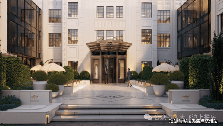 南北酒店式归家入口,南侧入口结合保留风貌建筑,风貌庭院式设计,给到满满的归家仪式感。
