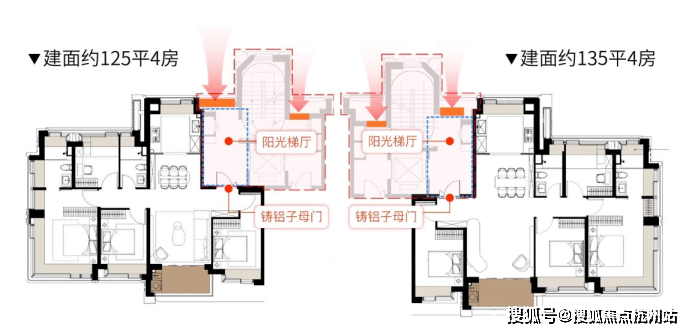 四房产品配备类一梯一户设计,以及市场罕见的阳光梯厅!