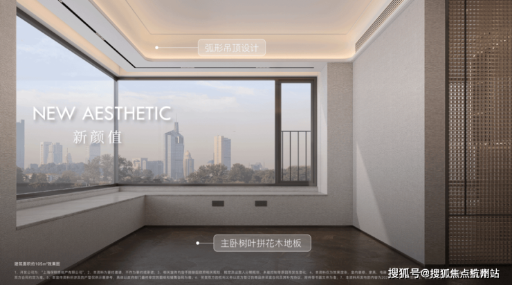 项目大量使用奢石设计,客厅四边弧形天花、主卧树叶拼花地板、精致优雅的骨骼线设计,都是开发商花费更大成本和耗材去呈现更美的视觉体验。