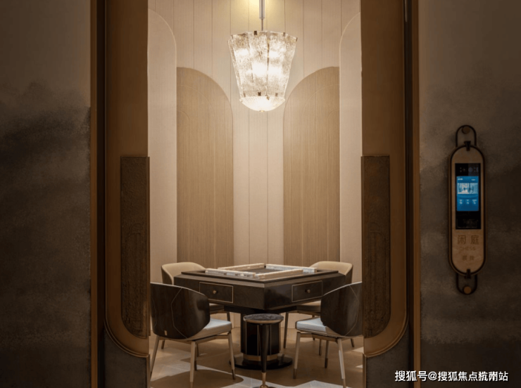 私宴厅&棋牌室承载了业主宴请、聚餐、洽谈、品茗、娱乐等多元社交场景。私宴厅当中悬挂的石材,来自项目团队多番挑选,来自一个奢石展馆里的孤品,不仅拥有昂贵的蓝色色泽,天生的羽毛状纹理更是罕见!