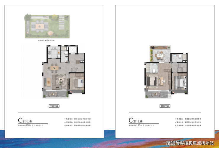 建面约150㎡3-4房 这个面积段的叠加空间更加富裕,空间打造上也更加灵动。主卧带观景阳台的设计,让四季景观尽收眼底。