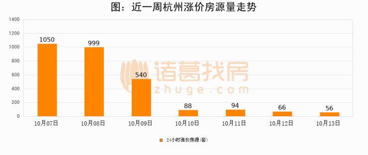 根据诸葛找房数据显示,杭州24小时涨价房源量为56套,较10月12日减少10套,环比下降15.2%。与此同时,涨价房源占比小幅回落,对于购房者来说是一个入市窗口期,购房者可抓住时机入市。