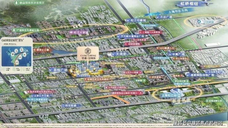 项目南侧直线距离约3.3km为松江枢纽,作为上海西南门户综合交通枢纽,未来将接入沪昆高铁、沪苏湖铁路等,项目所处仓城风貌区正位于松江新城与南部枢纽的衔接带,享受“站城一体”发展红利。