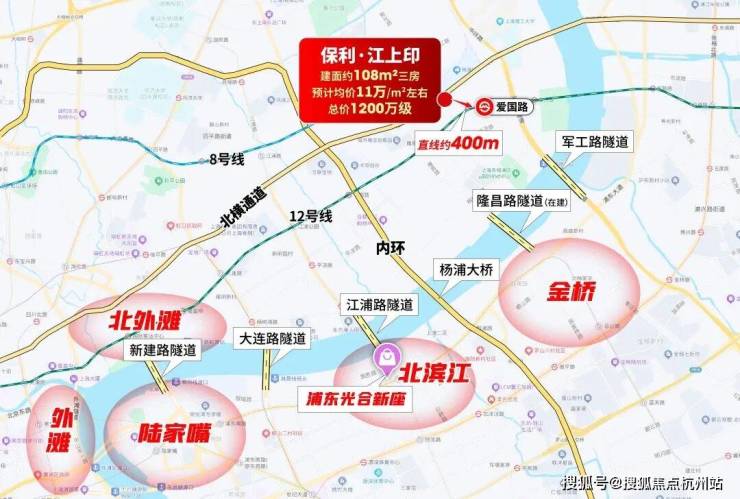再加上内环和五条过江隧道(包括桥)的加持,像杨浦滨江核心区、北外滩核心区、陆家嘴、世纪公园、南京西路、外滩等都是业主未来的生活圈