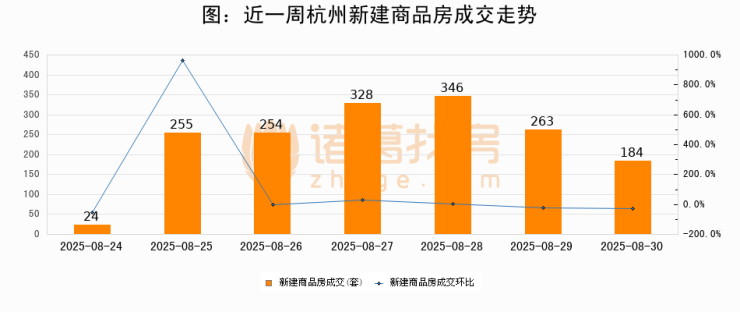【杭州成交日报】08月30日新房成交184套、二手房203套;涨价房源26套