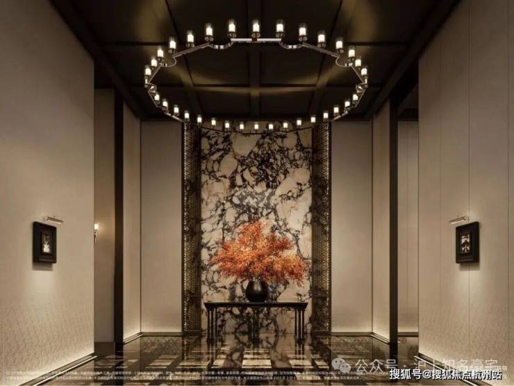 材料 选用 意大利石材,BVLGARI HOTEL大理石,铝型材塑型红, 四层金属网格 墙面以及 梧桐叶金属屏风 等! 打造独属老静安的记忆符号,高奢定制,市区豪宅调性拿捏!