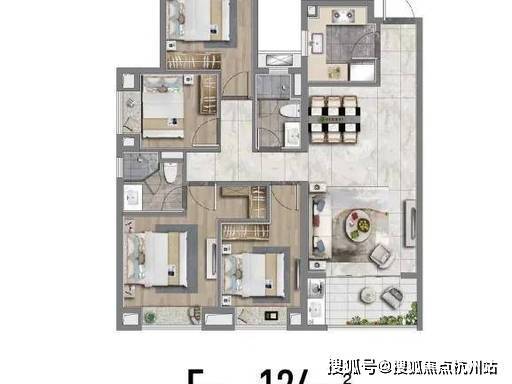 124㎡ 4 房 2 厅 2 卫(改善) :四开间朝南、南向面宽 10.2 米、双阳台、270° 飘窗,二胎 / 三代同堂一步到位。