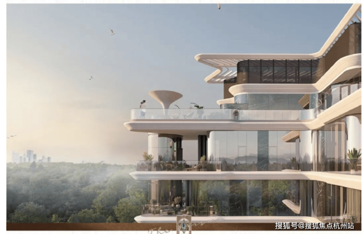 在立面形态上,打破天地的平面想象,告别砖石的沉重,将建筑美学与生活奢享深度融合, 以“垂直立体”的流瀑五叠设计,让建筑如水流般层层递进、光影通透 。更难得的是,流瀑五叠并非只为视觉服务,更是为每一层创造不同的观景视角和光影体验,让每一户都拥有独属自己的那一抹天光。