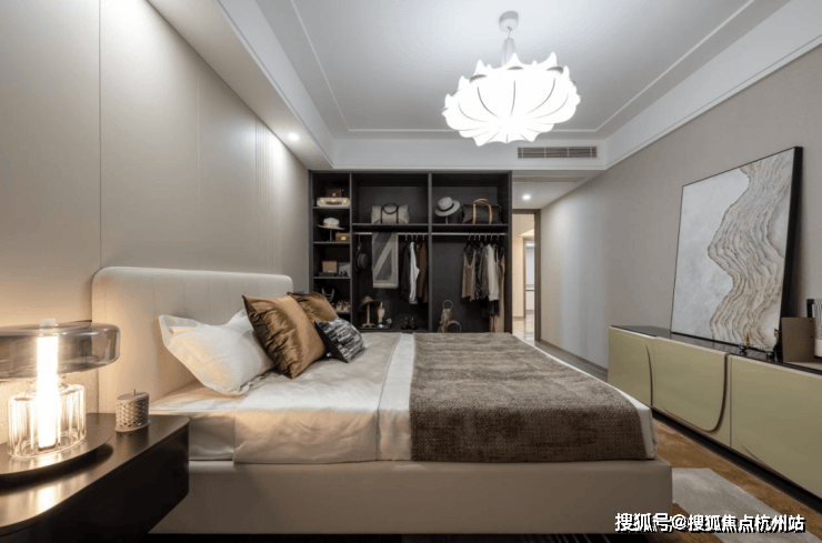 套房式主卧更是尊崇无比, 采用LED灯带吊顶,灯光点缀,倍感温馨。瞰景大飘窗设计,拨开窗帘就能沐浴阳光,尽揽室外美景; 尊享独立卫浴,夜深了看完世界杯比赛去沐浴洗漱,也不怕打扰到早已休憩的父母。