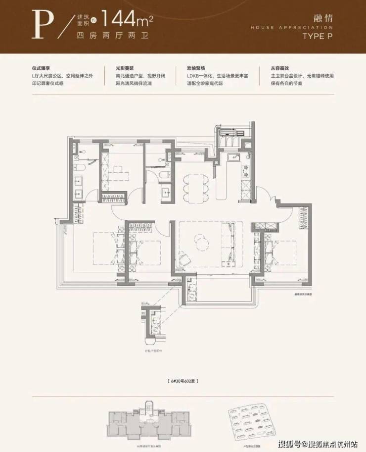 再来看下建面约144㎡4房,部分装标是有所升级的。