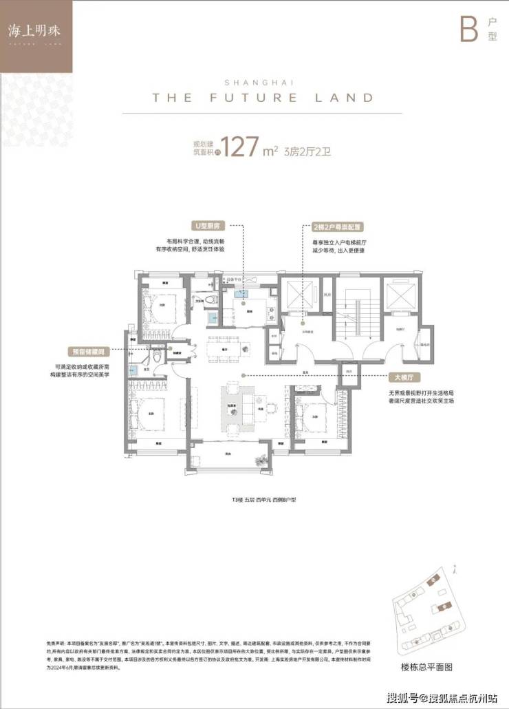 99㎡三房两厅两卫:刚需入门爆款,三开间朝南,U 型厨房,性价比突出