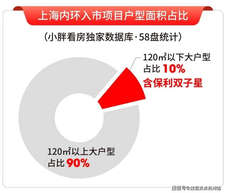 据小胖看房独家数据库统计,在目前内环已有明确户型面积的58个房源项目中,建面约120㎡以下的小户型仅6盘,保利双子星赫然在列。