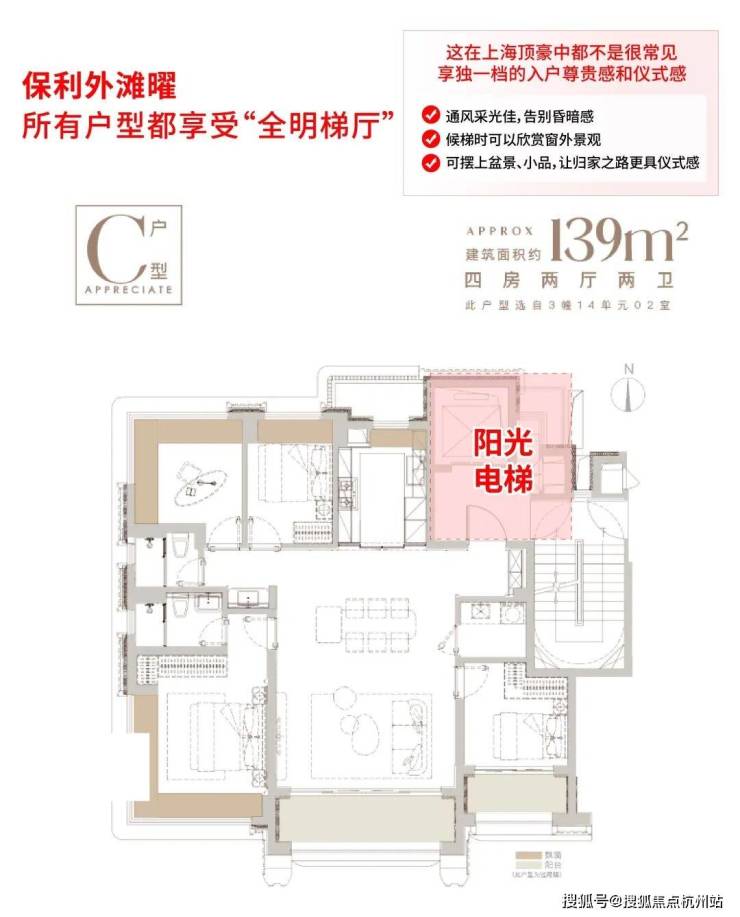 保利外滩曜的建面约139㎡户型,是项目仅2#、3#西边套才有的限量产品。