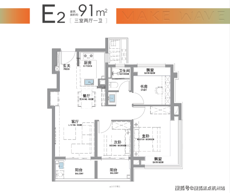 “南向双阳台+南北双飘窗”,构筑真3房户型!