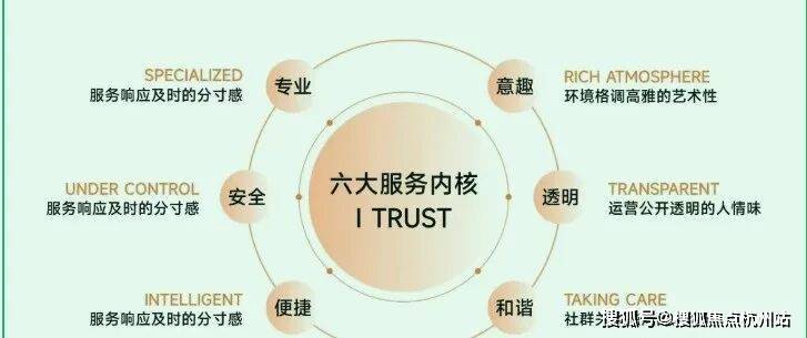 保利物业将品质服务品牌"亲情合院"深度融入日常生活,以"让家更暖"初心理念,围绕真、善、美、和四大维度,在社区落地呈现" I TRUST "六大服务体系,打造有生命的空间,有温情的社区,有质感的生活。