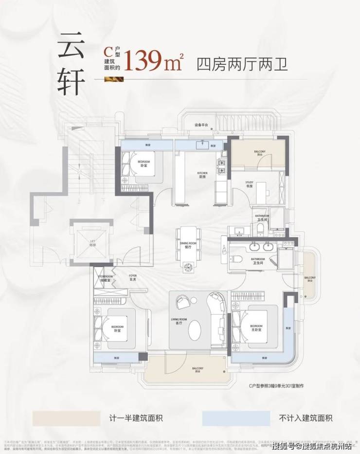 (2)建面约 139㎡ 四房两厅两卫(改善首选,29 套)