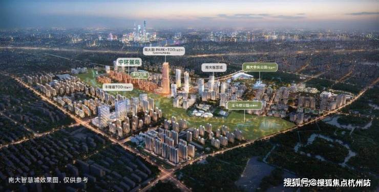 以南大路为核心,周边约100米范围内多座超100米,最高约250米的地标建筑。这里不仅是南大的产城融合中心,更是继陆家嘴、北外滩、前滩以及徐汇滨江的下一个地标建筑群。