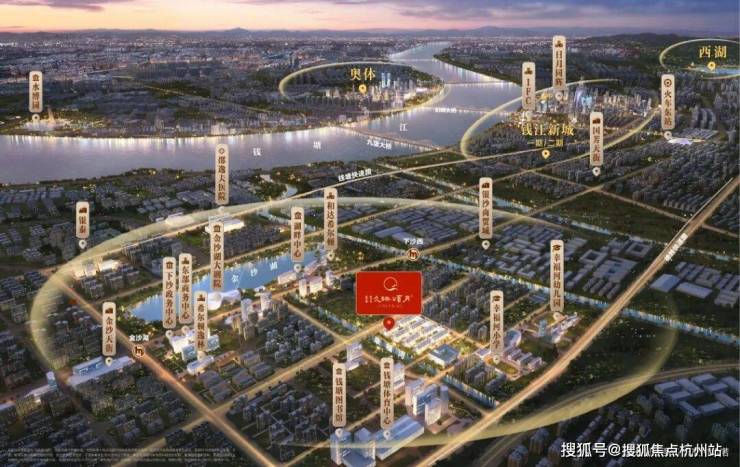 项目毗邻钱江新城,坐拥金沙大道、幸福南路以及德胜快速路等多条核心交通要道,构建起一个便捷高效的交通路网;地铁1号线『下沙西』『金沙湖』站,接轨杭州东站、萧山机场,换乘可瞬达钱江新城。1号线直线约500米金沙天街:金沙吾角天街、银泰百货、金沙印象城。