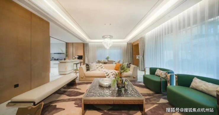 久映颂月府,随处可见极具年代感的红梅、贵妃罗汉松、羽毛枫和黑松,样板间里还有意大利顶级鱼肚白、宝格丽石材、雀眼木……那种高奢感、传世感皆不彰自显,让一众江景大平层都黯然失色。