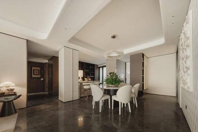 在130㎡户型空间里,深浅交替的色系,为空间注入典雅意境,强烈风格背后,是看不见的苛求极致。